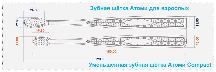 Зубная щётка Атоми. Вкладка с описанием от производителя.