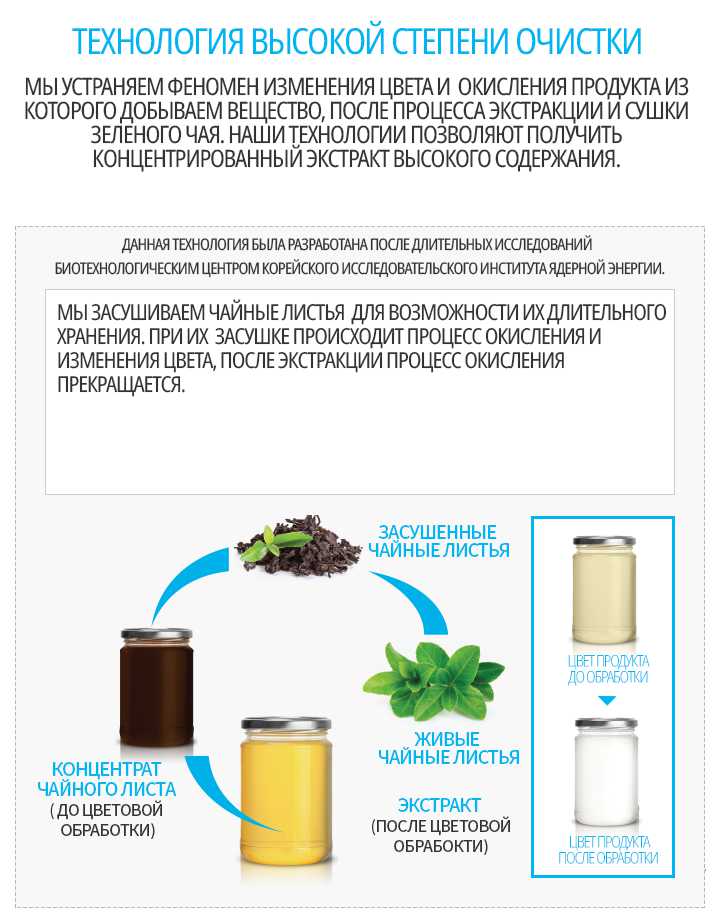 - Экстакт листьев зелёного чая.
